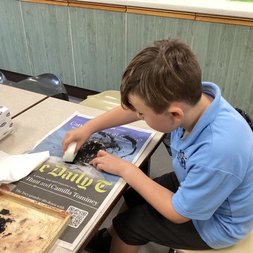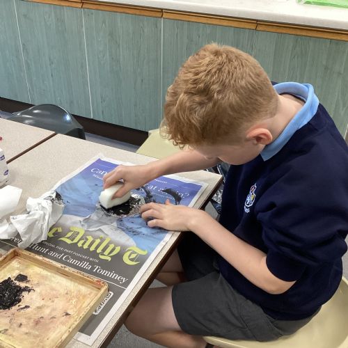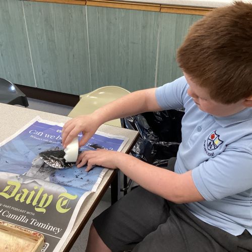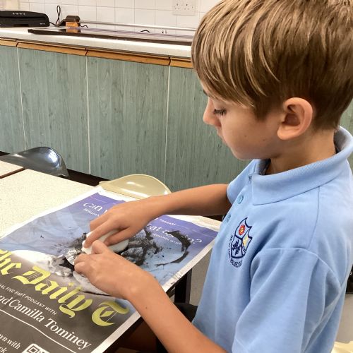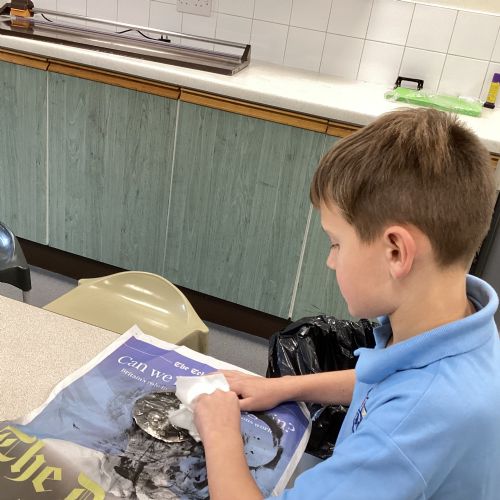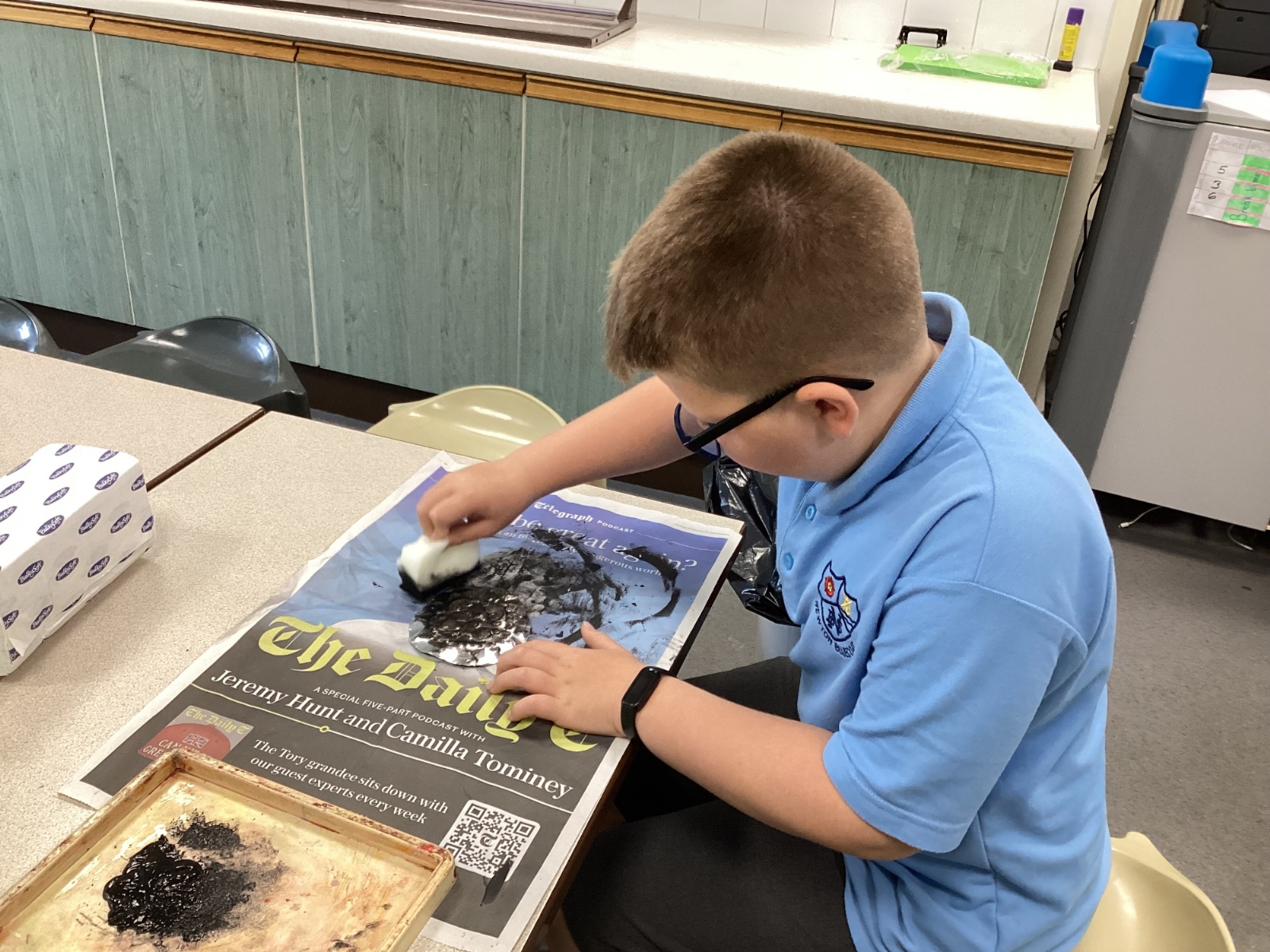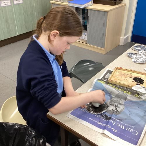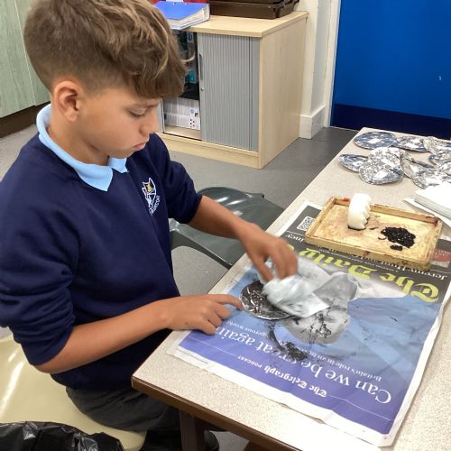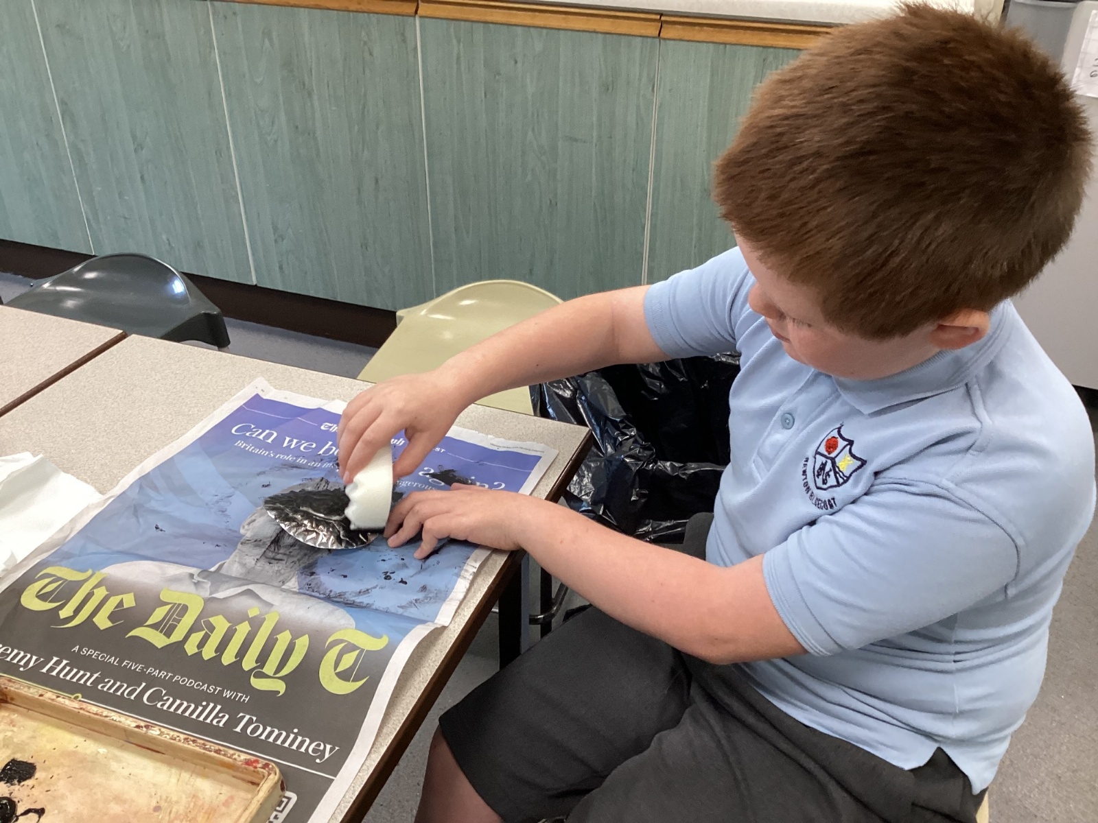 The children began by exploring real Anglo-Saxon brooches, studying museum images to spot patterns, symbols and shapes used over a thousand years ago. Inspired by these historic designs, we sketched our own brooch ideas, thinking carefully about symmetry and detail. We then used embossing and debossing techniques on metal to bring our designs to life.